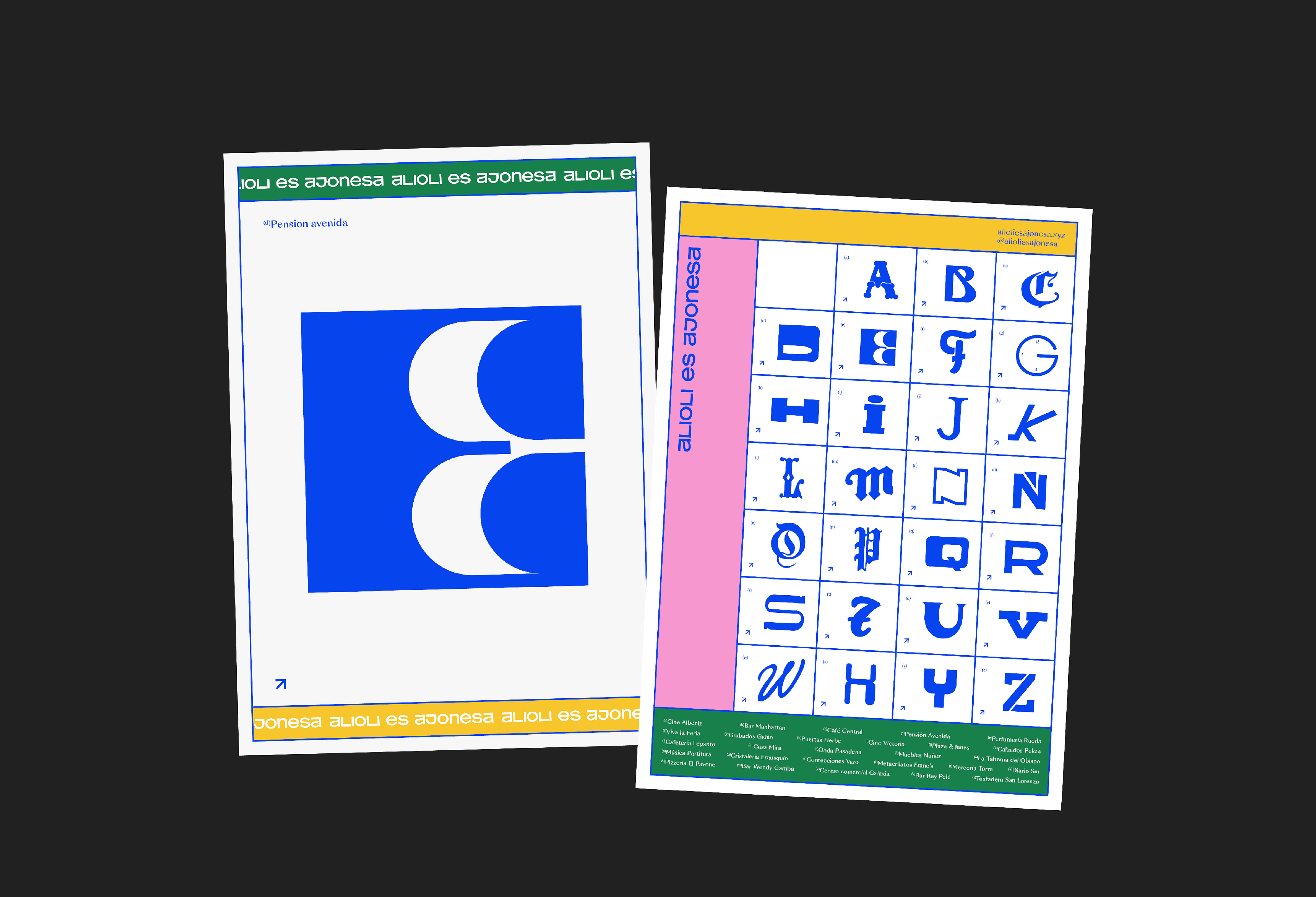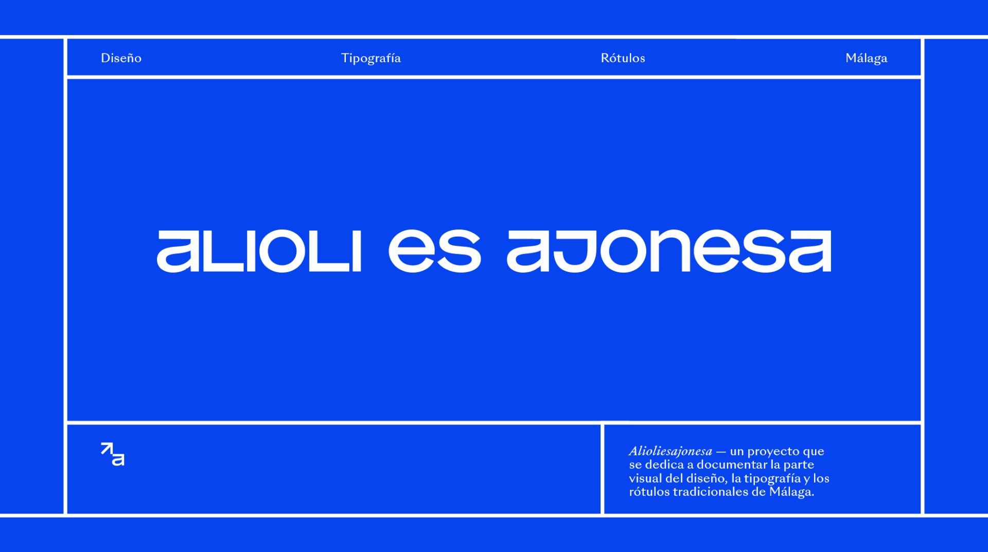Alioliesajonesa es un proyecto dedicado a documentar la imagen y tipografía de los rótulos urbanos de Málaga. Esta aventura cultural surge de la inquietud y la necesidad de conservar en el imaginario colectivo estos típicos letreros que forman parte de la identidad visual de nuestra ciudad.