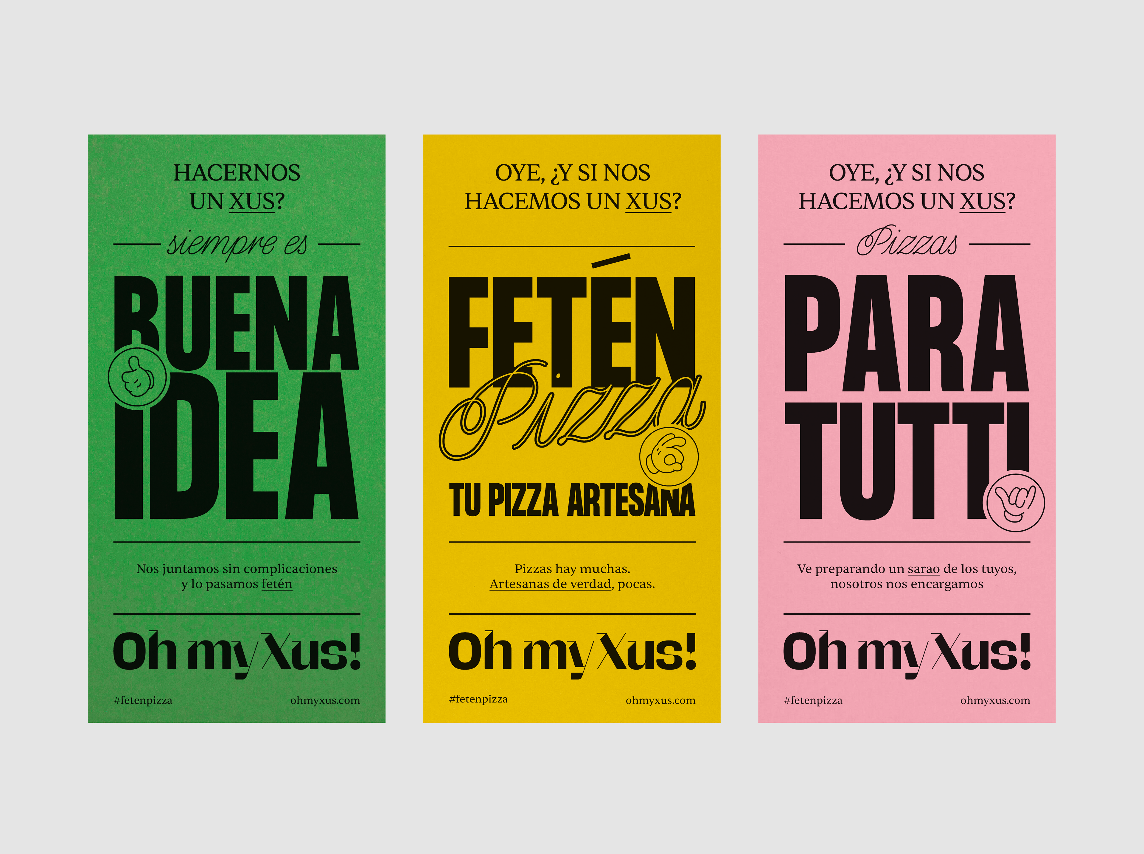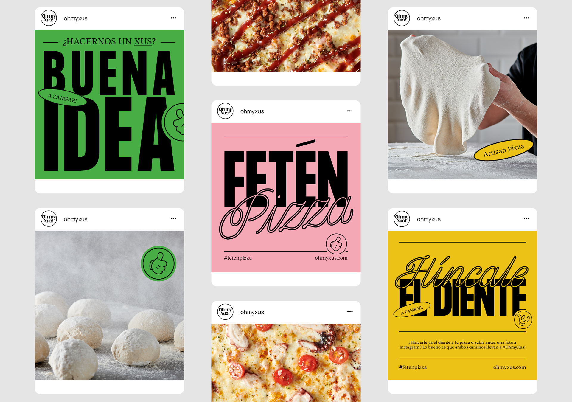 Oh my Xus! es la submarca de pizzas refrigeradas del Xus, un pequeño restaurante situado en Agramunt, Lérida. Con esta nueva marca se busca envasar sus pizzas de toda la vida para llevarlas hasta el último rincón del mundo. Ya están disponibles a través de su web y tiendas colaboradoras.